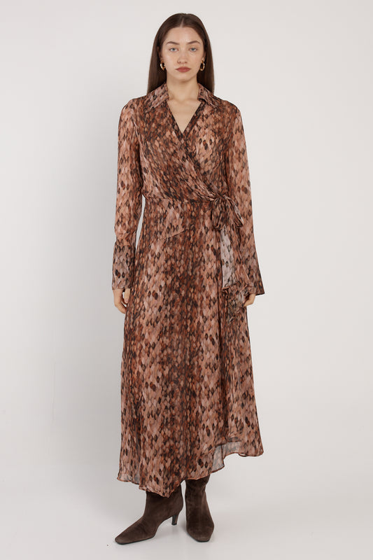 Fate & Becker Isla Wrap Dress - Brown Snake Print