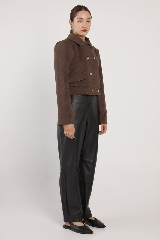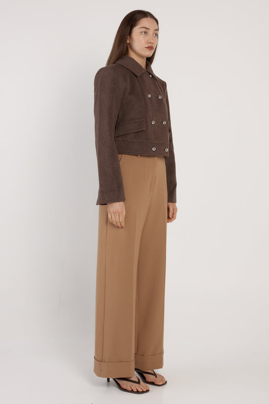 Fate & Becker Devyn Wool Blend Cropped Jacket - Chocolate Brown