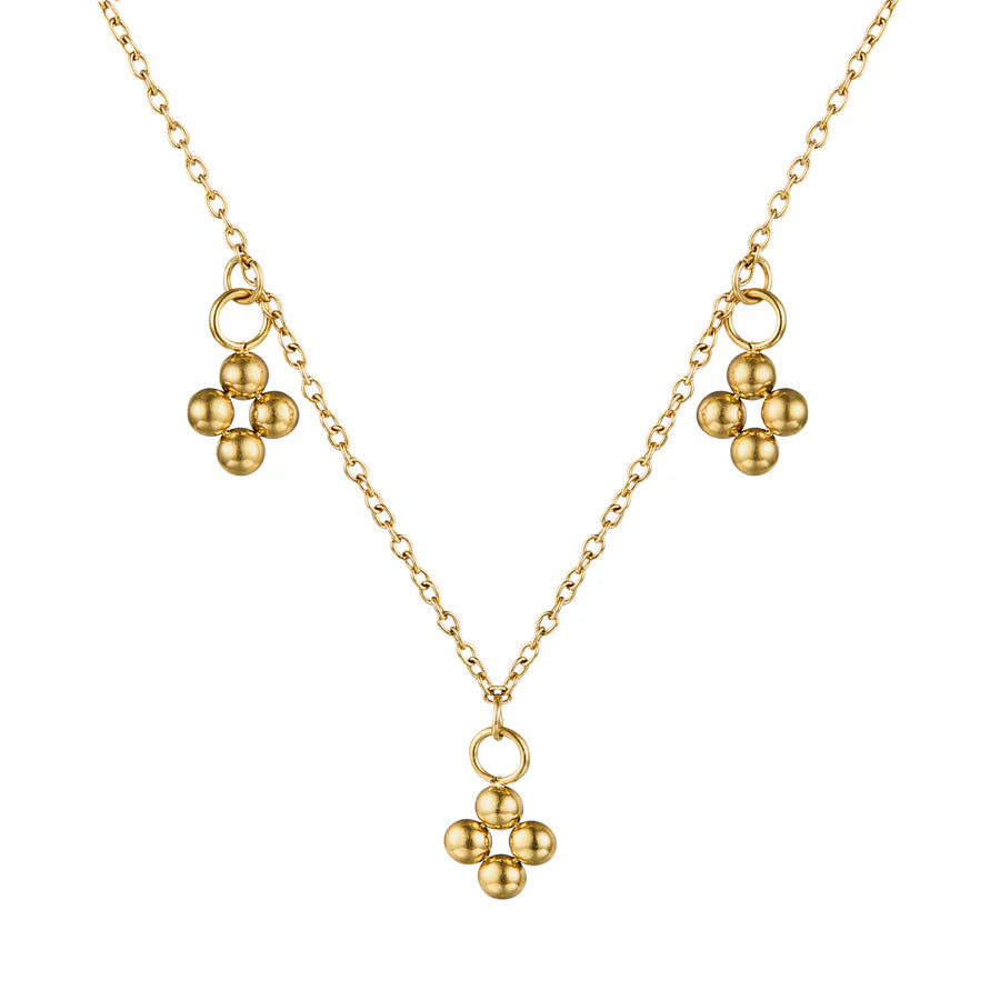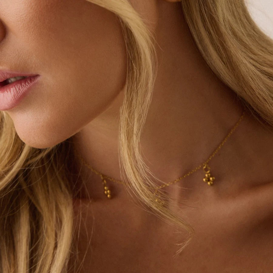 Fiore Choker features three delicately abstract flower charms paired back with a super fine cable chain. Crafted from high quality stainless steel meaning it is entirely WATERPROOF and plated in 18KT Gold.