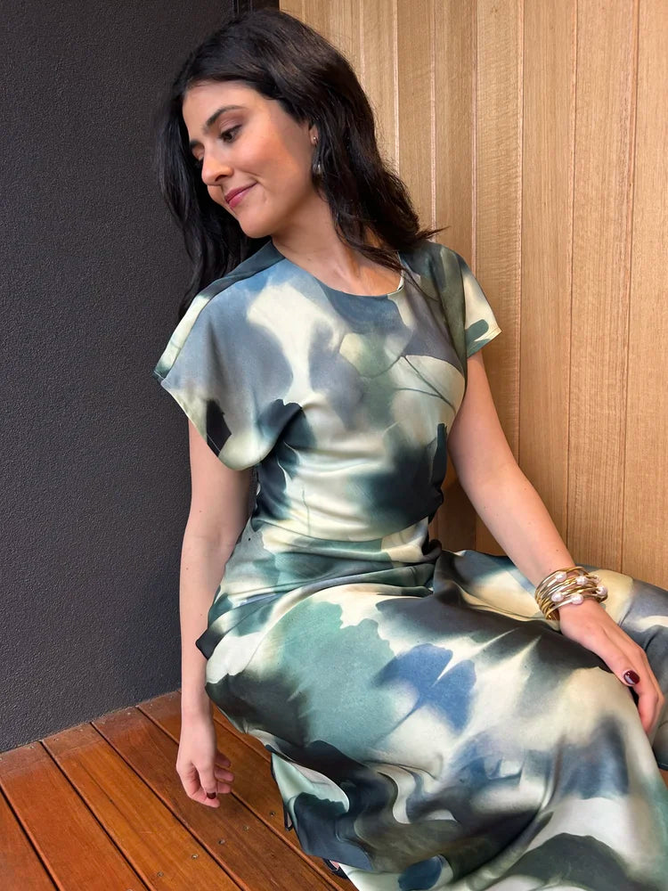 Kirra Twist Front Maxi Dress - Abstract Blue/Green