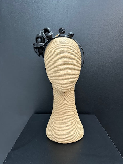 Max Alexander Black Leatherette Flower Headband
