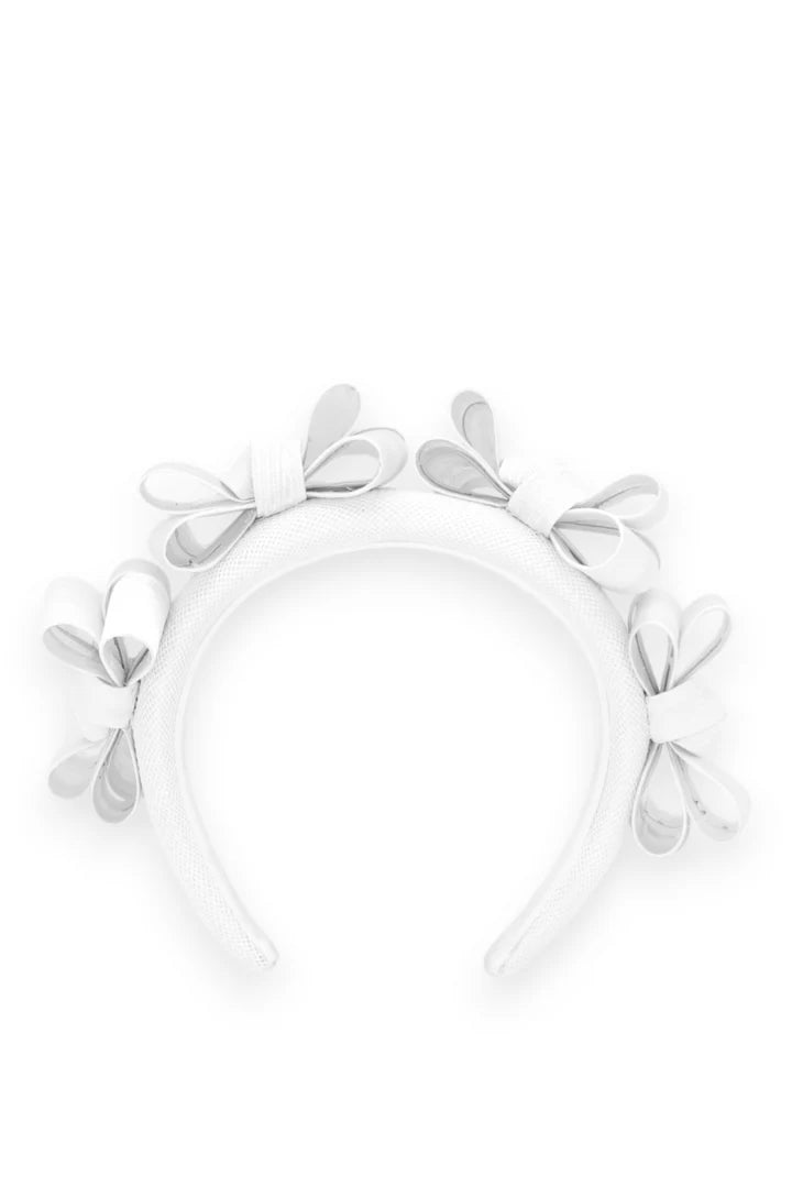 he Morgan & Taylor Poppy Fascinator in White is a modern and elegant design. The headband is trimmed with chic bows spaced across the crown for a contemporary and effortless look.