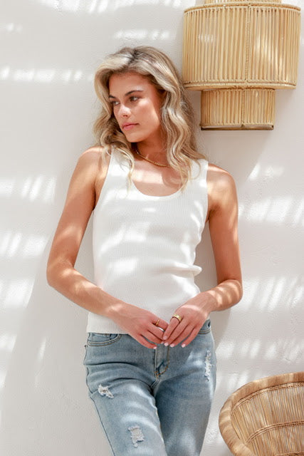 Introducing the must-have for every wardrobe: the Prairie Basic Knit Tank in white.